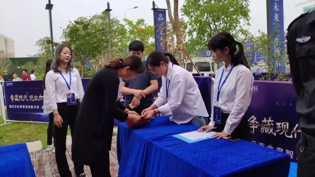 本次開盤,在現代城營銷中心舉行,共推出了3幢、7幢和8幢,共計116套臻稀房源,供客戶選擇,面積涉及94.4㎡、124.93㎡、139.74㎡和146.29㎡四種戶型,滿足了不同客戶群體的需求。簽到區井然有序,客戶自覺排隊驗籌;等候區內人頭攢動、人聲鼎沸、座無虛席,他們都奔著一個共同的目標而來,就是想購買到一套心儀已久的好房,圓自己一個理想家的美夢。