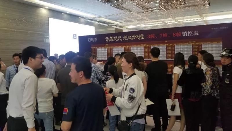 客戶在華豐置業工作人員的指引下,按照購房流程,根據順序號,5個號碼為一組排成隊,有條不紊地進入選房區選房。選房現場氣氛熱烈,激動人心,一聲接著一聲響亮肯定的房號確認,飄蕩在現場上空。“恭喜,3-2-502已售出”“恭喜,7-1-802已售出”“恭喜,8-3-1001已售出”……銷控板上出現了越來越多的“已售”字樣,幸運選房成功的客戶,臉上洋溢著幸福的笑容。