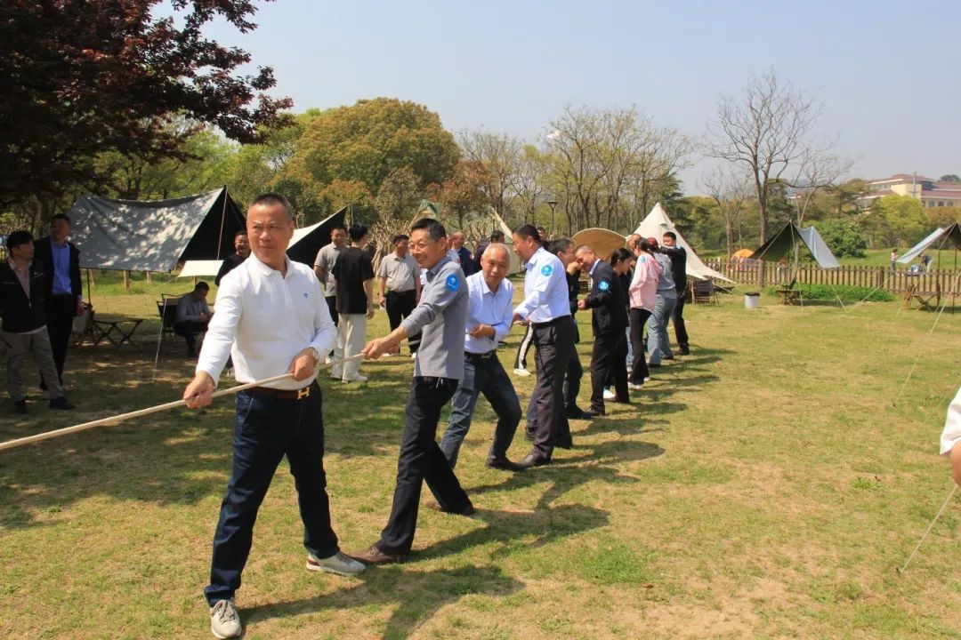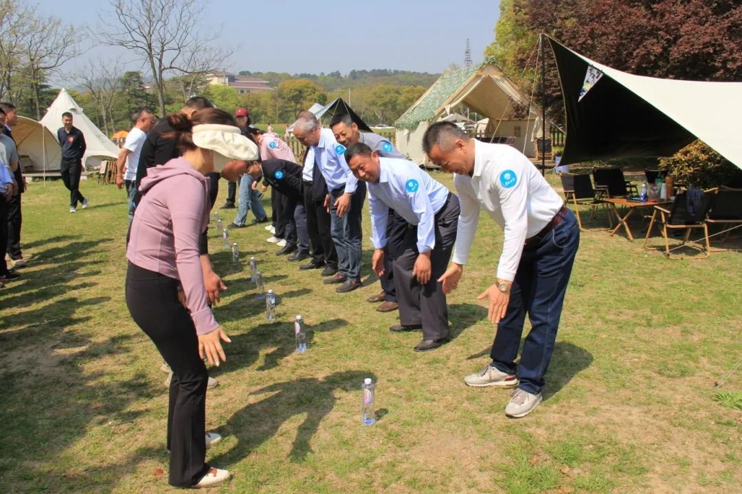 拓展競技環節,大家分為4個團隊開展,在考驗反應能力的搶水瓶突圍賽中,藍隊和紅隊以“預判對手節奏”戰術并列取勝,櫻花朵朵開環節,“十朵櫻花”團結合作贏得最后勝利。