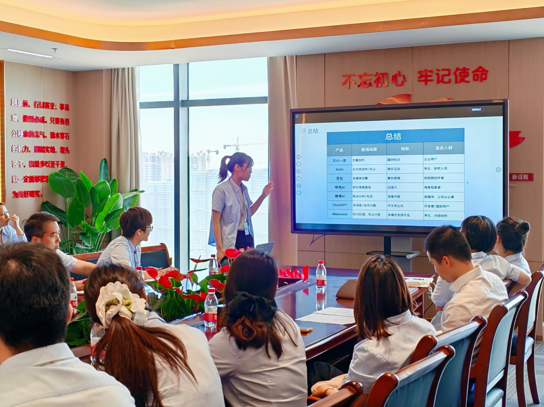 培訓(xùn)會上,詳細(xì)講解了文心一言、Kimi、豆包、夸克深度思考、微博智搜回答、ChatGPT、deepseek7款軟件的核心功能與行業(yè)場景,涵蓋智能對話、圖像生成、數(shù)據(jù)分析等多個領(lǐng)域。