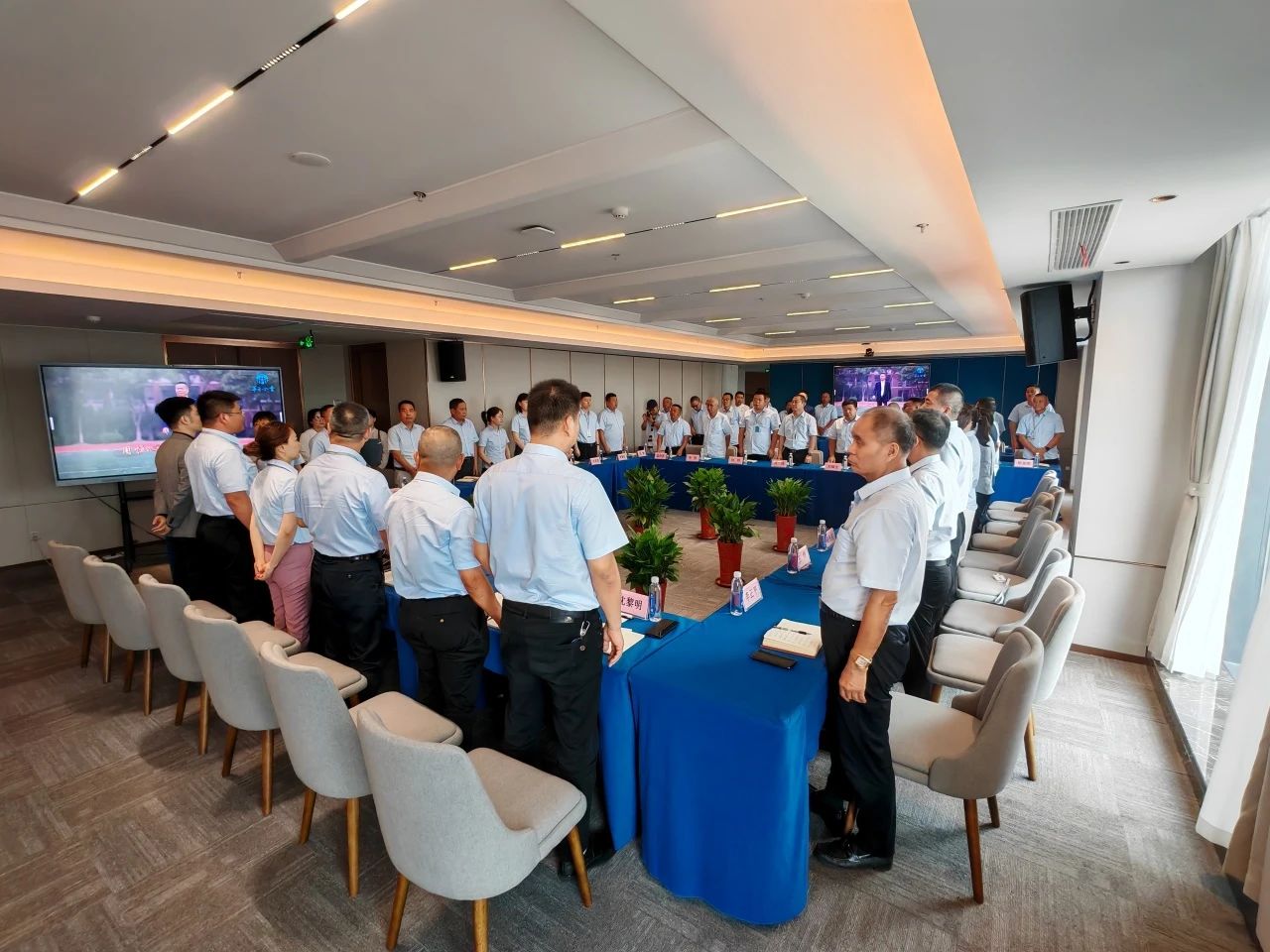 全體參會人員肅立齊唱,鏗鏘有力的旋律回蕩在會場,彰顯了華方人團結拼搏、銳意進取的精神風貌。