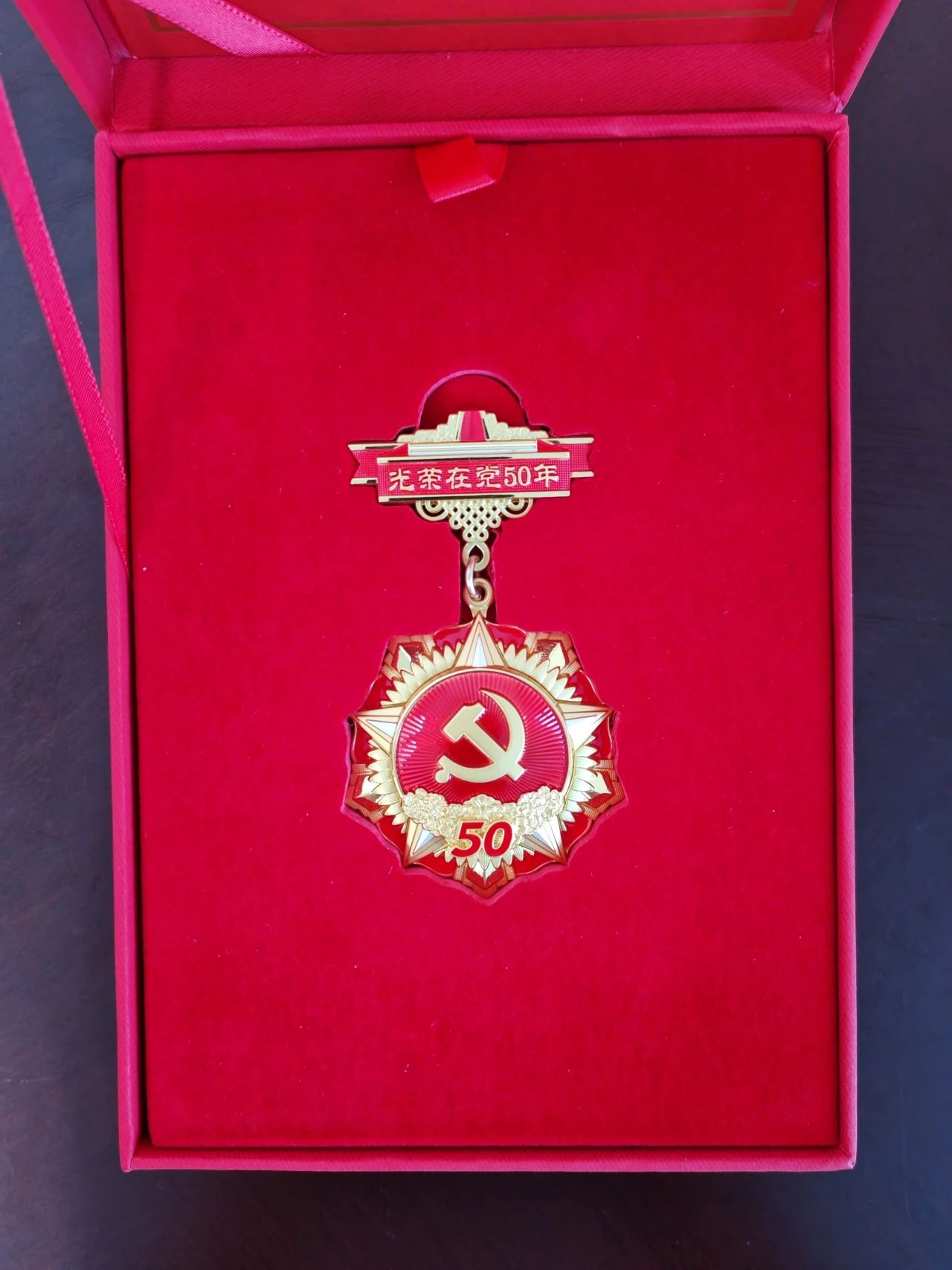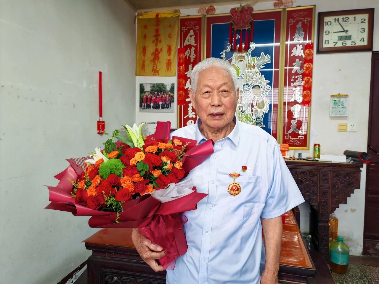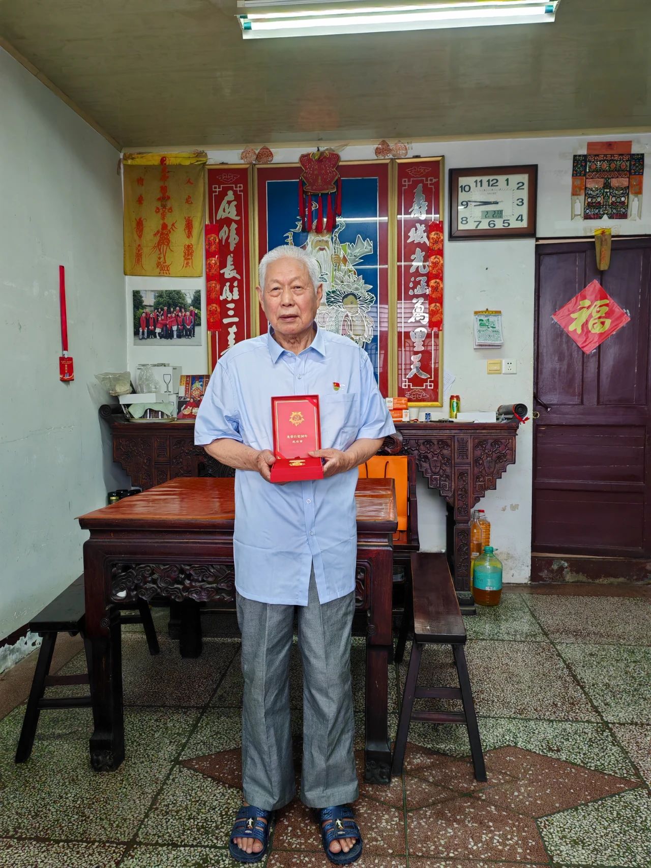 在華建照同志家中,華方企業(yè)黨支部一行鄭重地將承載著五十年忠誠的紀(jì)念章交到華建照同志手中,老人布滿歲月痕跡的手微微顫抖,眼中泛起欣慰的光芒。